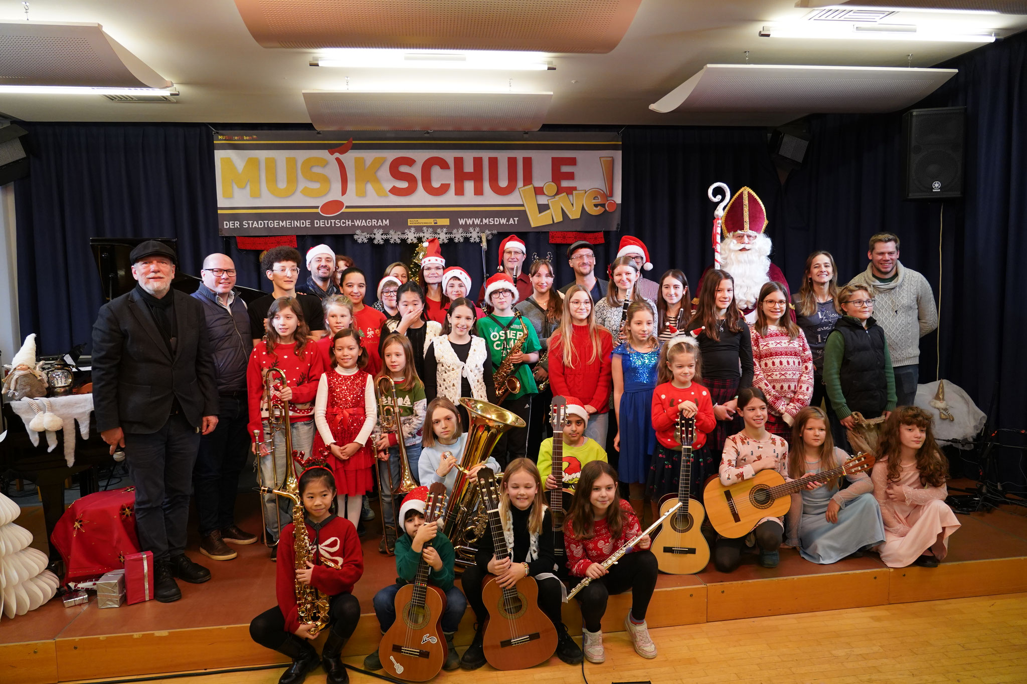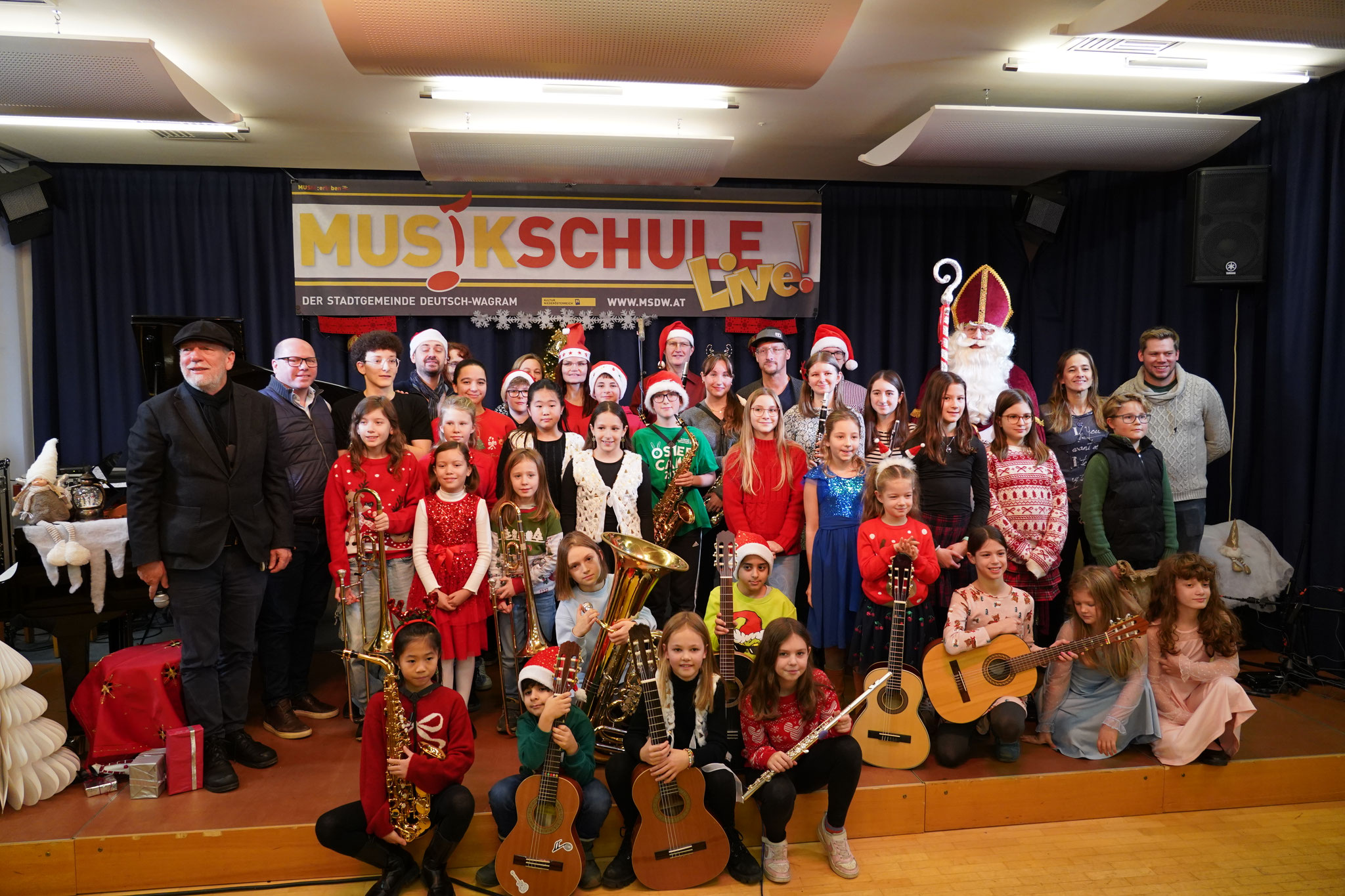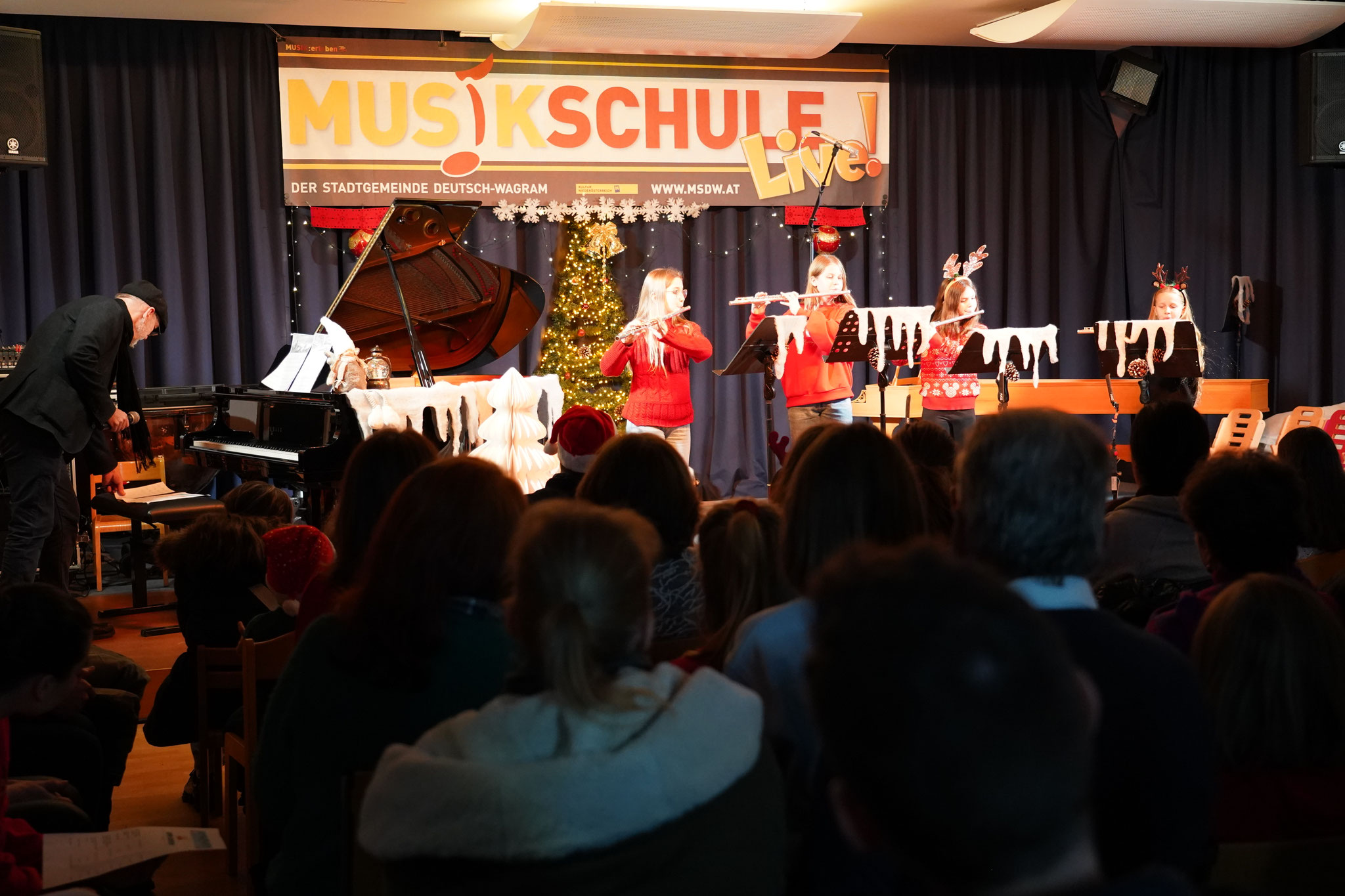 Das Konzert eröffneten die Cool-Strings unter der Leitung von Paul Mittermayer jamaikanischen Klängen, einem Dance Monkey und sie ließen bei einem Kanon auch ihre Stimmen hören. Die Bach Juniors verwöhnten das Publikum unter der Leitung von Katharina Grabenbauer mit Marc Antionne Charpentier, einem „freudigen Wiedersehen“ als musikalischen Gruß und einem Kingston Calypso. Nach der Pause ließen die Flying Strings, geleitet von Paul Mittermayer mit Gästen aus der Musikschule Gänserndorf unbekannte und bekannte Melodien klingen von Offenbach bis ABBA. Dass die Bühne zu klein ist, um alle MusikerInnen aufzunehmen, hinderte nicht daran, sich zusammen zu stellen, um mit der „Drowsy Maggie“, einem irischen Reel einem gemeinsamen Anschlussstück, das Konzert zu beenden.